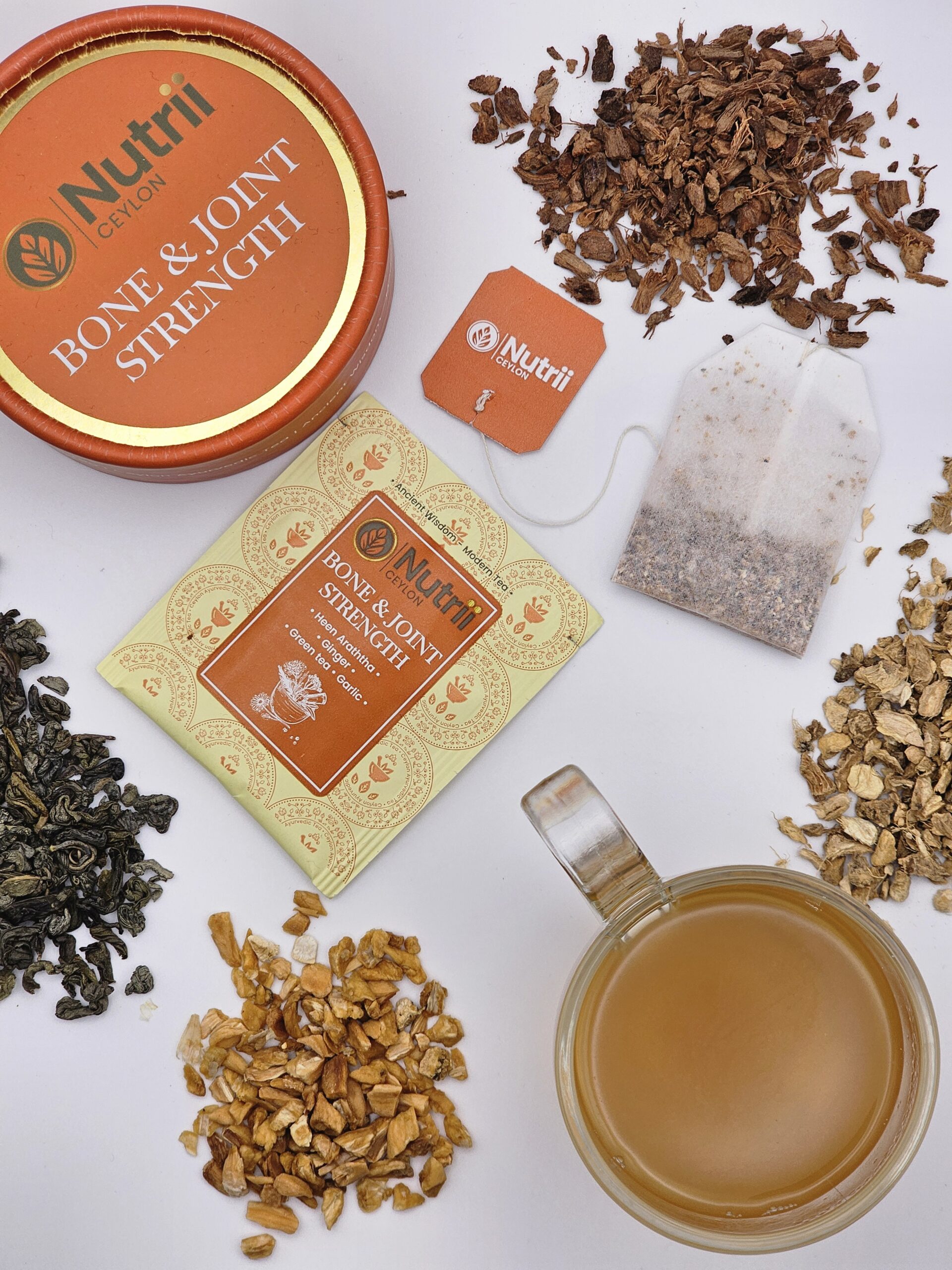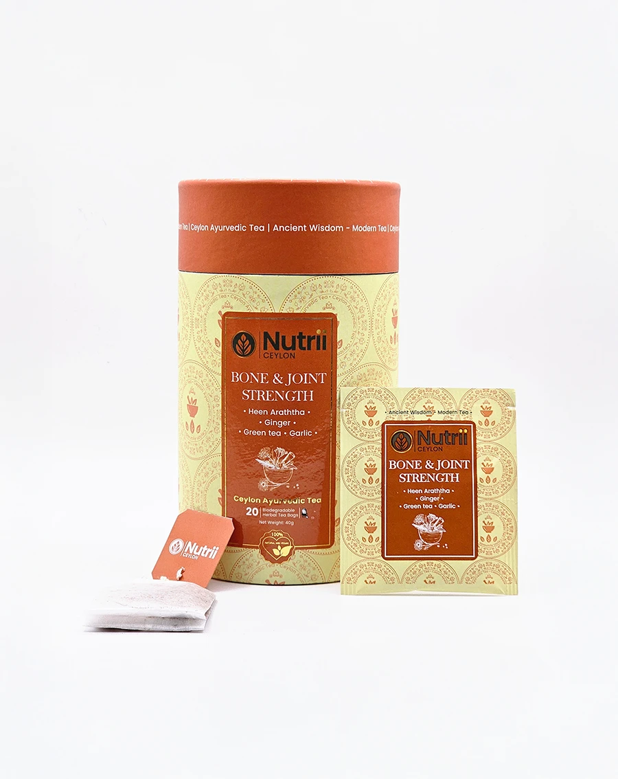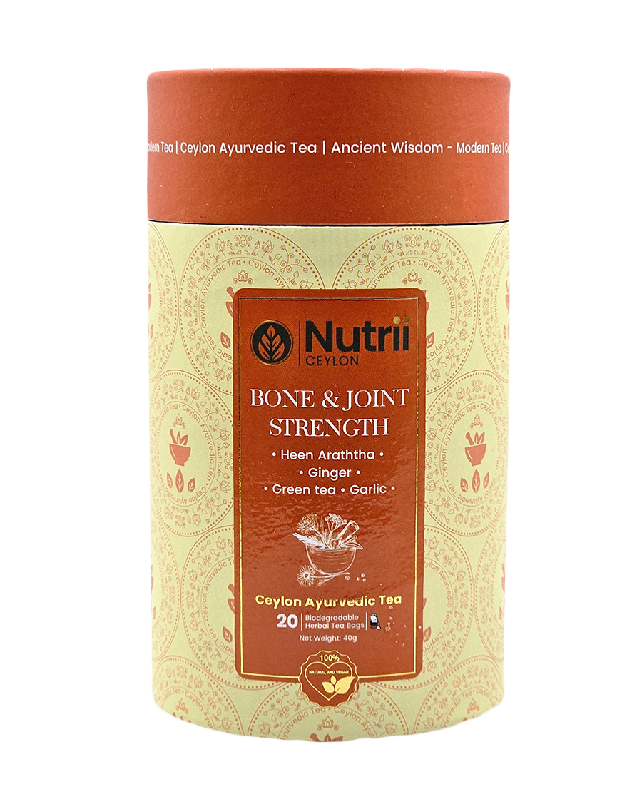 Rejuvenate your bones and joints with the medicinal treasures of rare herbs, blended with ancient Ayurvedic wisdom. The Nutrii Ceylon Bones and Joint Support tea works its magic to support your musculoskeletal health while enhancing mobility and flexibility, keeping you active and vigorous every day. Embrace centuries of healing and wellness flowing through you with every soothing sip, guiding your body towards balance and harmony.
