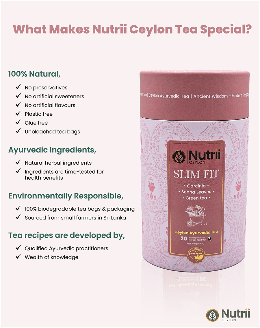 Stay on top of your weight management journey and control your cravings with ease with our Slim Fit tea. Rich in Ayurvedic herbs that aid fat-burning and digestion-boosting capabilities, the Slim Fit tea offers a chemical-free, all-natural method to help you look and feel your best. Slim Fit tea is the perfect fusion between ancient Ayurvedic wisdom and modern wellness to guide you on a journey to a healthier you.